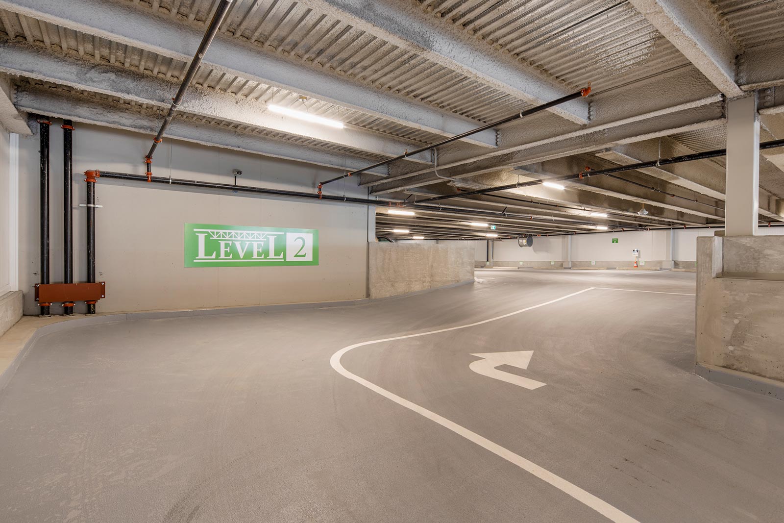 - Levels 2 through 5 contain 4 electric car charging stations each (16 total)